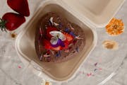 Lassen Sie den Kuchen eine Nacht im Kühlschrank ruhen. Am nächsten Tag platzieren Sie ihn in Ihrem Bento oder auf einem sauberen Teller.