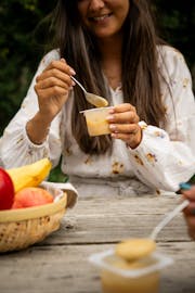 Unsere Fruchtkompotte "Plaisir de Fruits" erstrahlen nun ebenfalls in neuem Glanz: frei von zugesetztem Zucker, um sicherzustellen, dass Sie bei jeder Mahlzeit den vollen Genuss und die unverfälschte Natürlichkeit erleben können.